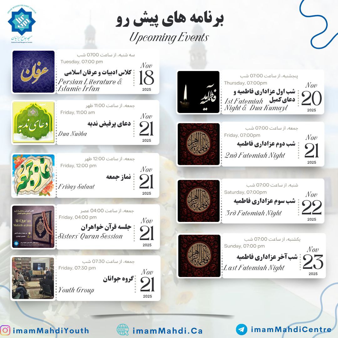 🌙 Upcoming Programs at Imam Mahdi Islamic Centre
